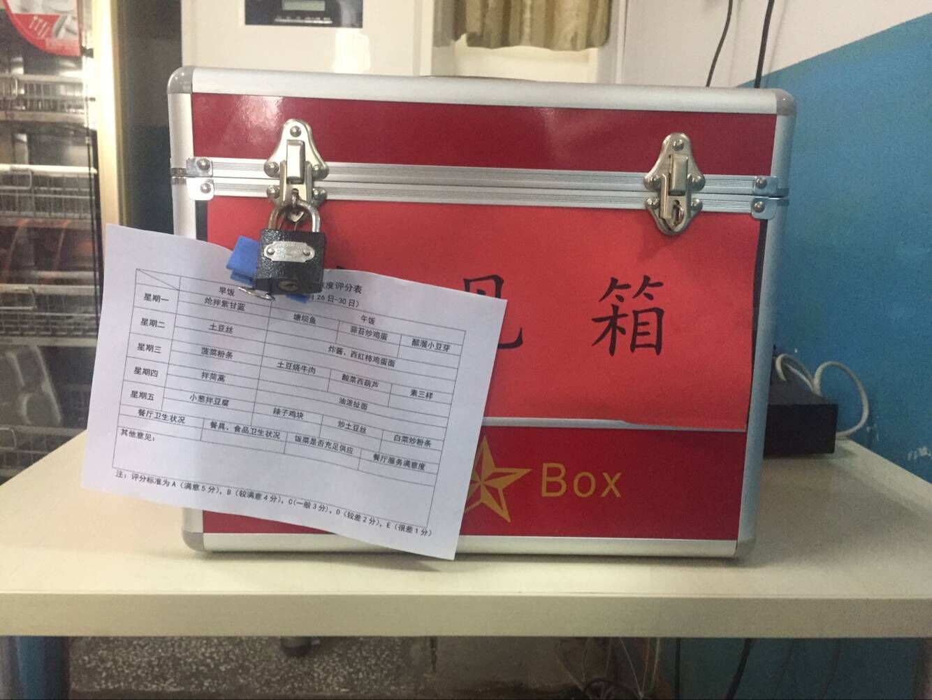 綜合辦公室精心設計了食堂滿意度調(diào)查表,置于食堂顯眼處,供就餐職工領取填寫。調(diào)查表主要針對食堂環(huán)境、餐具衛(wèi)生、飯菜質(zhì)量、花樣品種及食堂日常管理等,通過打分的方式,對于食堂工作的各個環(huán)節(jié)給予評價。要求大家真實、客觀地填寫問卷,并重點對菜的種類及口味提出意見和建議。