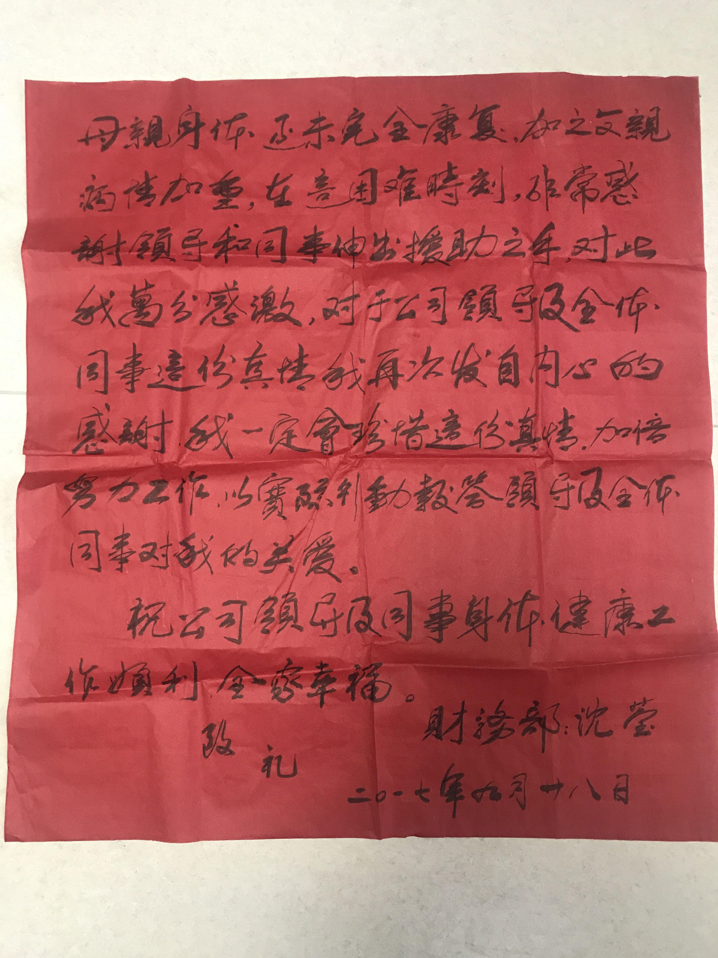 大愛無疆,真情永在,公司黨委、工會(huì)得知此事后,迅速發(fā)出愛心捐助倡議書,號(hào)召公司全體職工為沈瑩捐款,幫助她走出困境。倡議一經(jīng)發(fā)出,立即得到了大家的積極響應(yīng),紛紛伸出援助之手,一個(gè)星期內(nèi),就收到愛心善款70000余元。