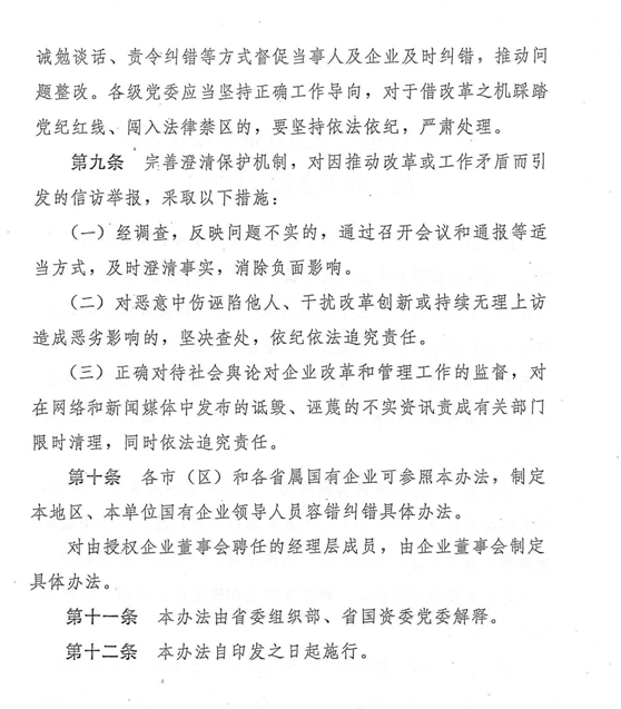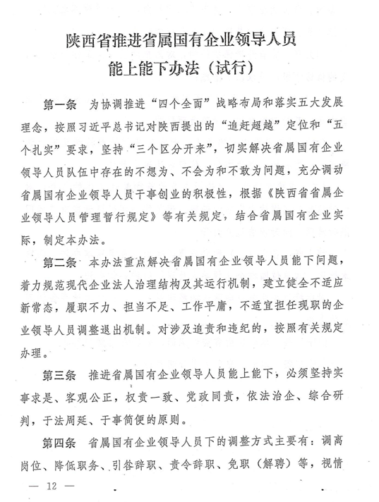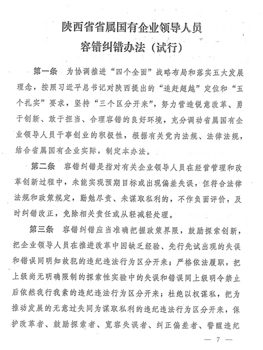 陜西省省屬國有企業(yè)領(lǐng)導(dǎo)人員鼓勵激勵、容錯糾錯、能上能下辦法