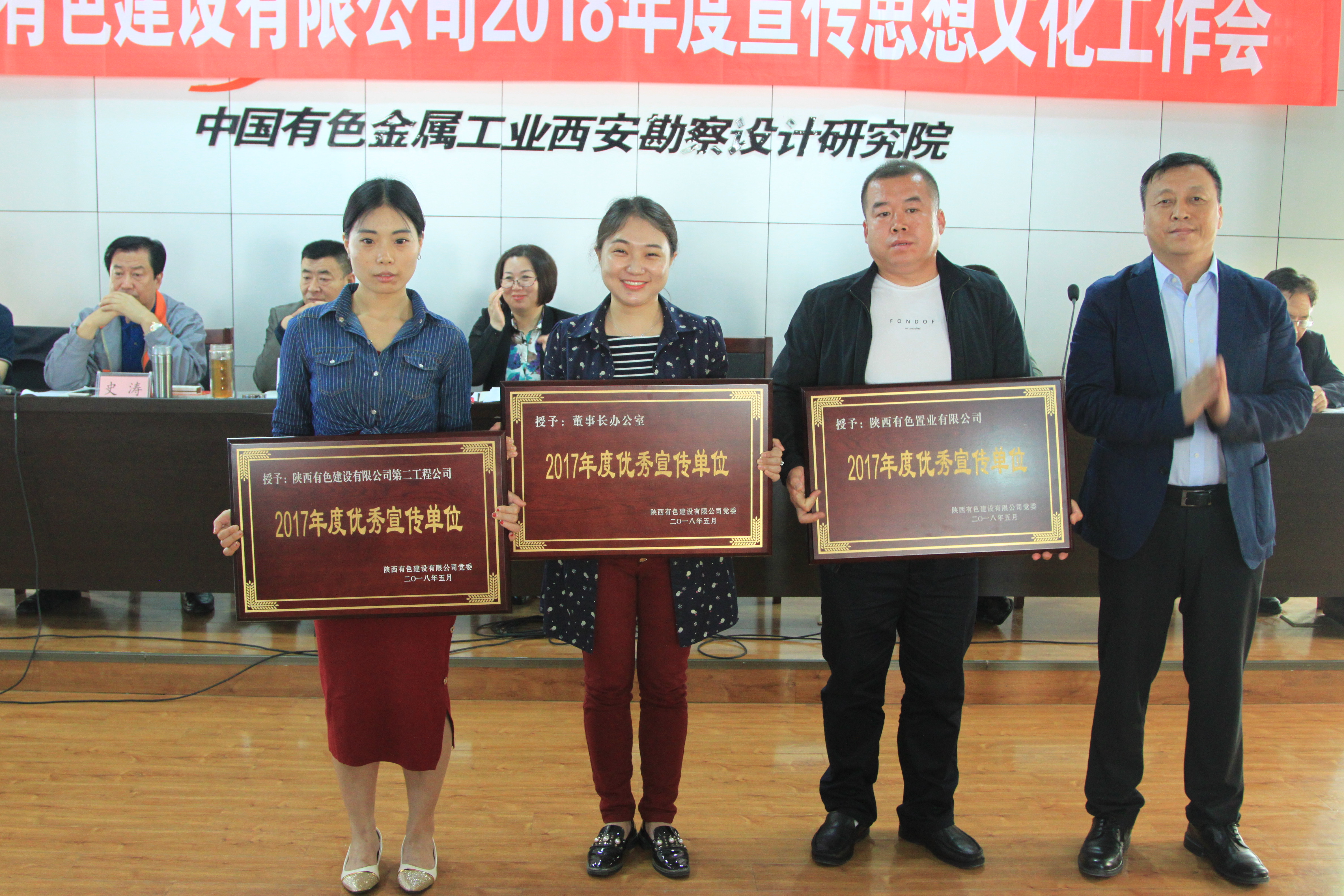 首先,黨群工作部主任段鑫總結(jié)了2017年度各單位及通訊員的投稿情況,匯報了公司意識形態(tài)陣地的管轄分布情況,希望各陣地責(zé)任人切實負(fù)起責(zé)任,認(rèn)真做好維護(hù)和管理工作,確保公司意識形態(tài)陣地可管可控。隨后,公司紀(jì)委書記、工會主席段曉峰,黨委副書記、總經(jīng)理楊明鈺分別宣讀了公司《2018年度宣傳思想文化工作要點》及《關(guān)于表彰2017年度優(yōu)秀宣傳單位和優(yōu)秀通訊員的決定》。會上授予,第二工程公司、董事長辦公室、有色置業(yè)“2017年度優(yōu)秀宣傳單位”榮譽(yù)稱號;授予徐曼恬、何明明、姚黛茜等9名同志“2017年度優(yōu)秀通訊員”榮譽(yù)稱號。