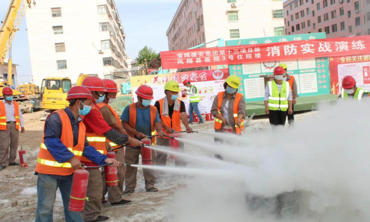 2020年6月是全國第19個“安全生產(chǎn)月”,為進(jìn)一步加強(qiáng)項目安全管理工作,強(qiáng)化消防安全意識,認(rèn)真貫徹”安全第一、預(yù)防為主、綜合治理”的方針,全面落實安全生產(chǎn)主體責(zé)任,牢固樹立保安全就是保穩(wěn)定、保安全就是促發(fā)展的重要思想,有色陜建第二工程公司在鳳翔縣醫(yī)院項目部組織開展模擬消防安全演練活動。本次演練以模擬火災(zāi)發(fā)生后的組織滅火救援為主要內(nèi)容,鳳翔縣消防支隊、鳳翔縣縣公安局、縣醫(yī)院醫(yī)護(hù)人員、公司項目全體參建人員,項目其他建設(shè)單位300多人參加了此次演練活動。