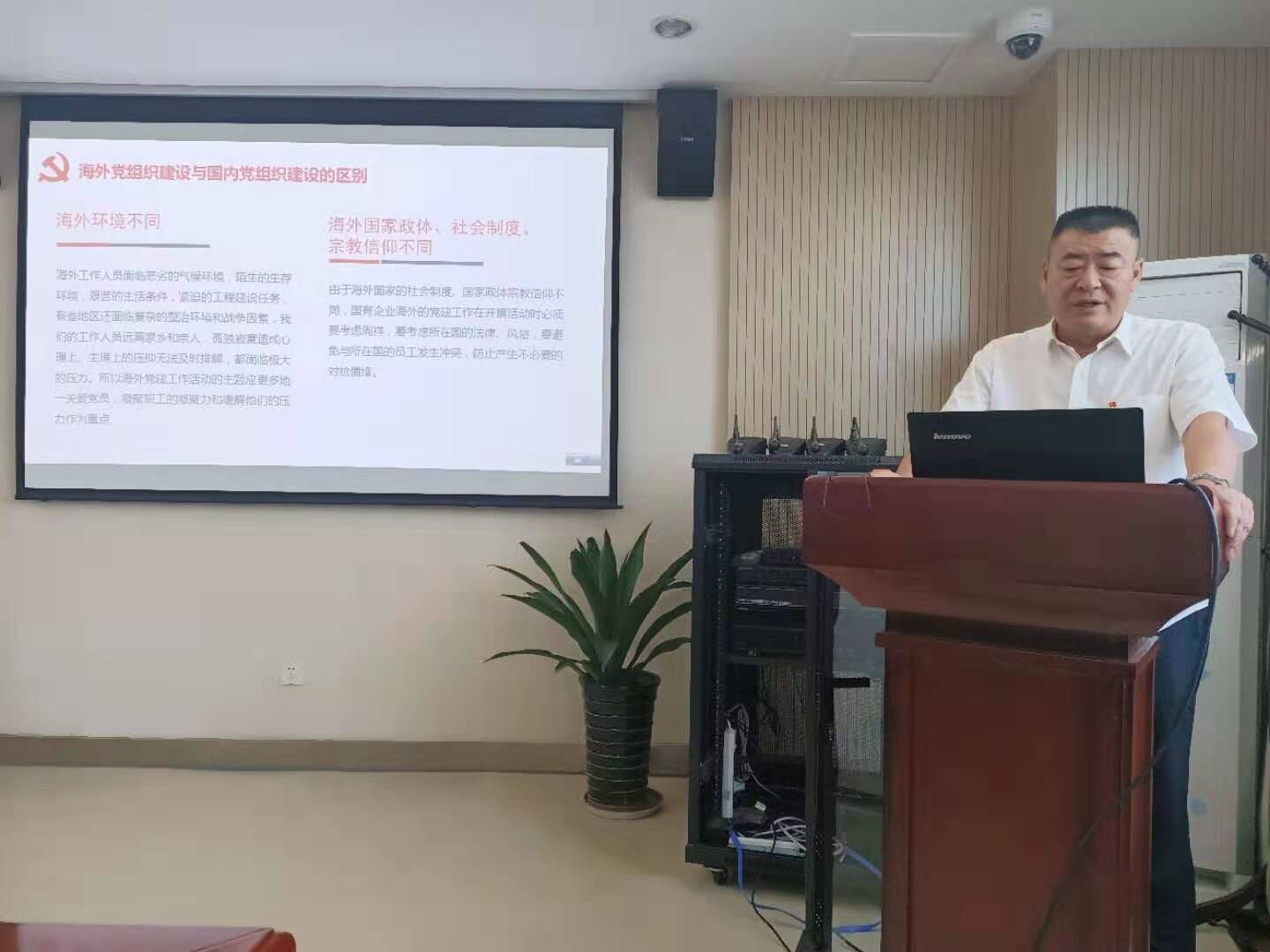 接下來,由黨委委員李七一同志以《關(guān)于海外基層黨組織建設(shè)工作的調(diào)研匯報》為題,從海外黨組織建設(shè)與國內(nèi)黨組織建設(shè)的區(qū)別、如何做好海外基層黨建工作、加強海外基層黨建思想政治工作、創(chuàng)新活動,發(fā)揮黨員作用四個方面給支部全體黨員講授黨課。他指出海外市場前景廣闊,黨員同志要加強自身學習,提高自身專業(yè)水平的及語言學習應(yīng)用水平,為公司開辟新市場,創(chuàng)造新的經(jīng)濟增長點多做貢獻。