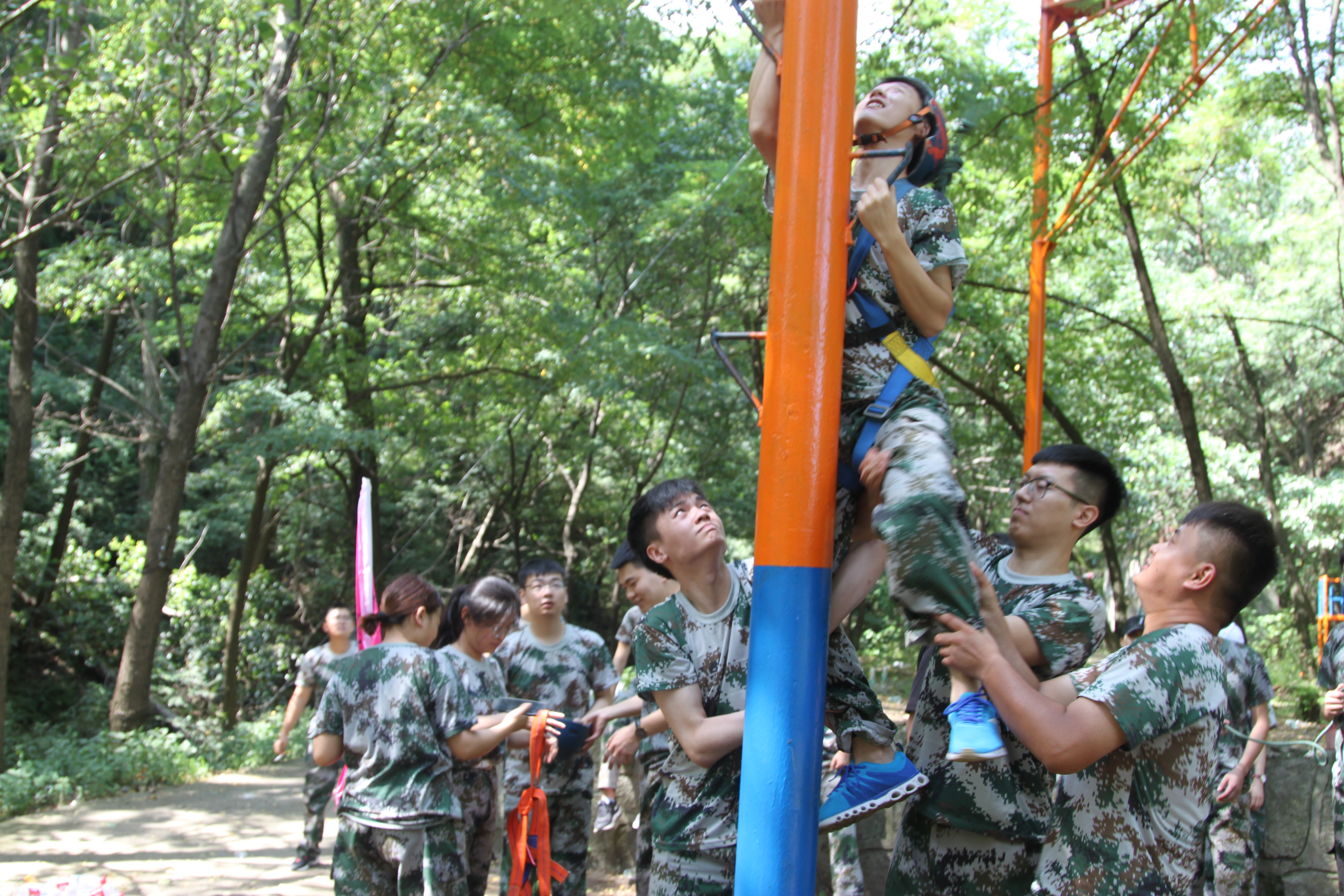 在報(bào)到結(jié)束后,公司新入職員工首先前往秦嶺山麓湯峪湖拓展培訓(xùn)基地進(jìn)行了3天的戶外拓展訓(xùn)練。教練在開營儀式上詳細(xì)講解了拓展訓(xùn)練的意義,并與大家對有色陜建的企業(yè)文化進(jìn)行了深入的學(xué)習(xí)交流。在隨后進(jìn)行的“急速60秒、高空斷橋、鼓動人心、流程管理、畢業(yè)墻”等任務(wù)的分組比拼中,通過選拔隊(duì)長、任務(wù)分解、團(tuán)隊(duì)協(xié)作、經(jīng)驗(yàn)交流的方式讓員工在訓(xùn)練中領(lǐng)悟團(tuán)隊(duì)之間的信任、協(xié)作、民主,發(fā)現(xiàn)團(tuán)隊(duì)的核心,獲得個(gè)人的歸屬感。大家在每項(xiàng)任務(wù)比拼后,都積極參與分享與交流,不僅加深了彼此間的認(rèn)識和了解,更促使每個(gè)新生都迅速地融入團(tuán)隊(duì),懂得了換位思考、擔(dān)當(dāng)
