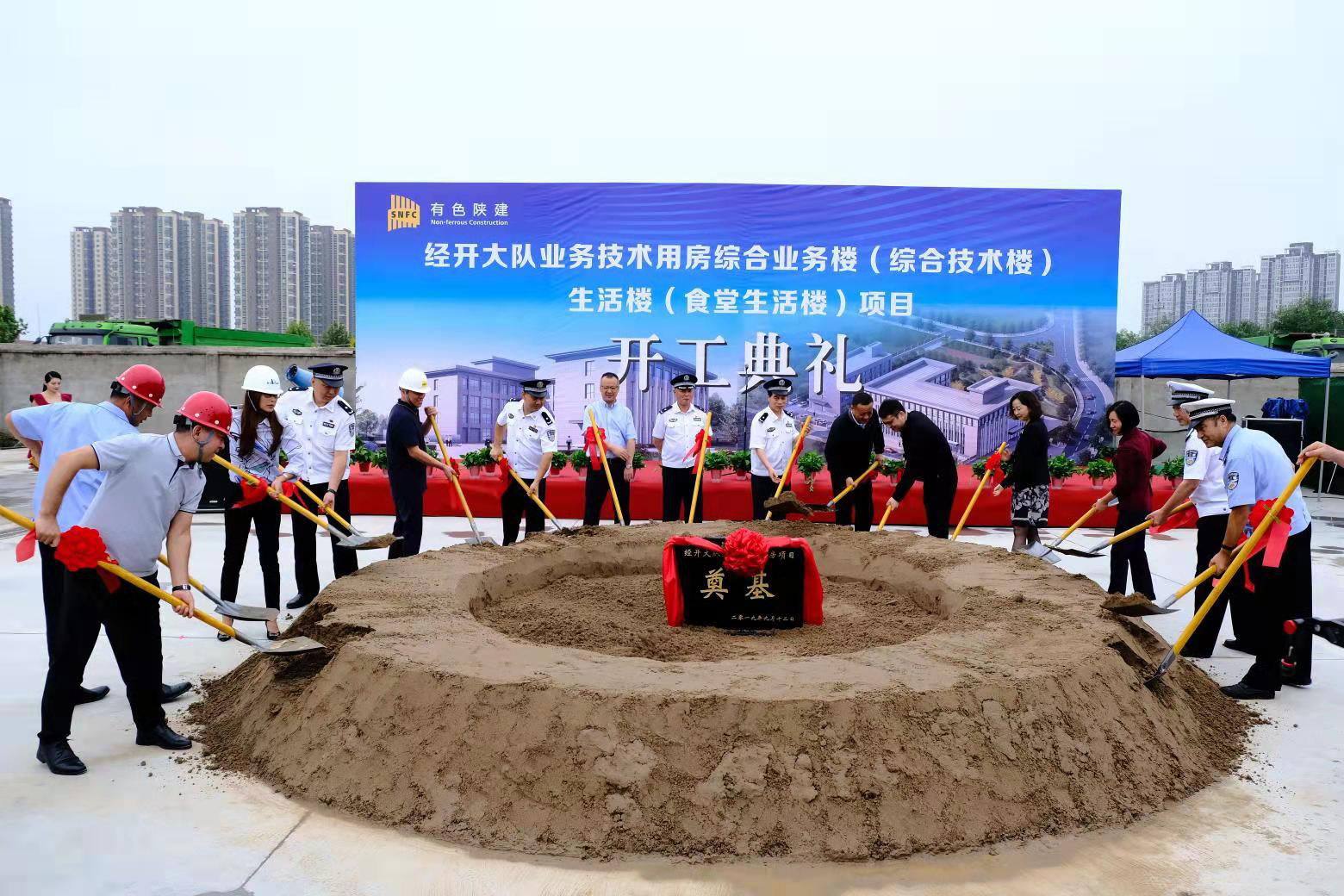 最后,西安市公安局副局長(zhǎng)趙亞平宣布奠基儀式正式開(kāi)始,大家同擎金鍬,揚(yáng)土培基。